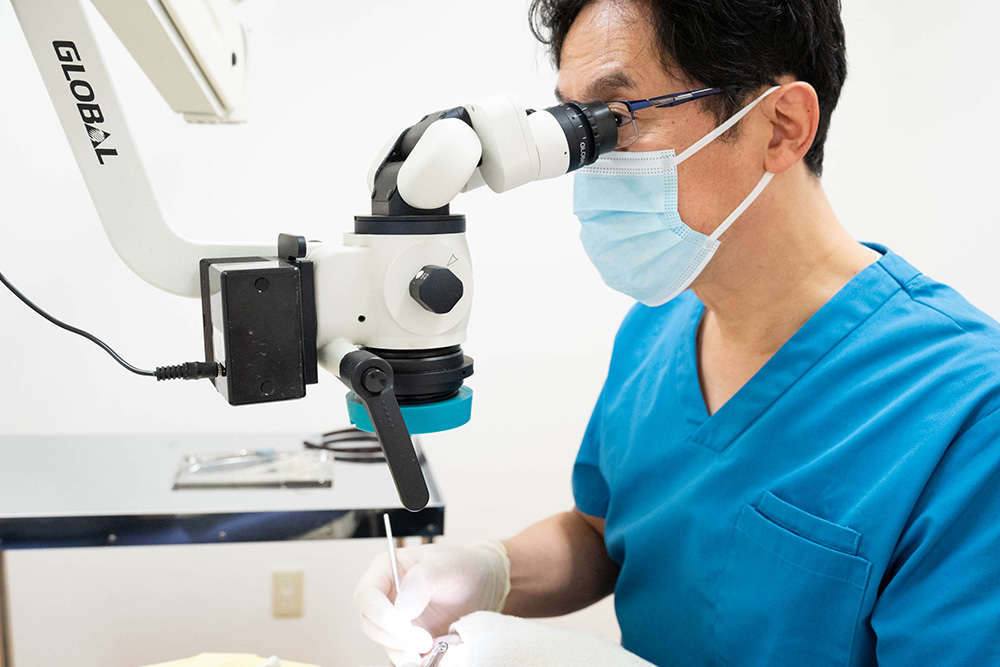 切削範囲や切削量が多くなると、処置に伴う痛みも大きくなります。当院では、マイクロスコープや歯科拡大鏡を用いた拡大視野の下、必要最小限の切削を心がけ、処置に伴う痛みの緩和に努めています。